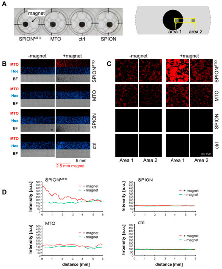 3.2. Magnetic Accumulation of SPIONMTO