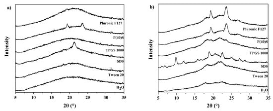 | Surfactant System | Tg 1 (°C) | Tg 2 (°C) | Water Content (w %) | Tg 1 (°C) | Tg 2 (°C) | Theoretical Tg of Homogenous System | Duration until Recrystallization (weeks) |