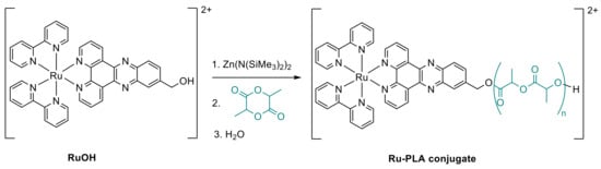 - Soliman, N.; McKenzie, L.K.; Karges, J.; Bertrand, E.; Tharaud, M.; Jakubaszek, M.; Guérineau, V.; Goud, B.; Hollenstein, M.; Gasser, G.; et al. Ruthenium-initiated polymerization of lactide: A route to remarkable cellular uptake for photodynamic therapy of cancer. Chem. Sci. 2020, 11, 2657–2663. [Google Scholar] [CrossRef]