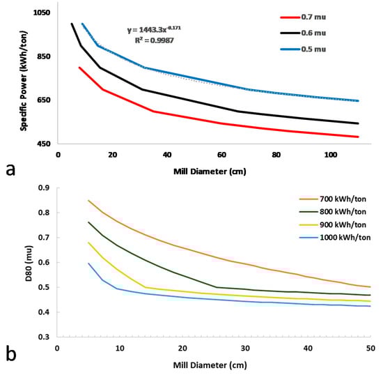 where is the ball diameter in cm; d is again the mill diameter, m; is the BWI; is speed percent of critical; and is the feed specific gravity. The process parameters critical for a scale up, i.e., the product dependent BWI and specific power, the mill diameter, which defines the correction of the BWI, the mass throughput, the angular speed defined by the critical speed of the mill, and finally the type and quantity of the grinding balls dependent of the rest of the parameters are provided in Table 10.