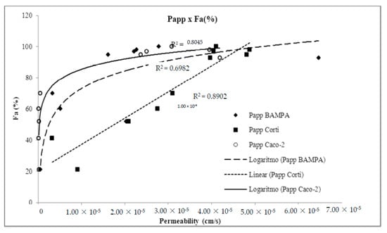The in vitro permeability (Papp) of each drug studied was compared to in vivo absorption in humans (Fa%), Papp in Corti artificial membrane [16], and Papp in Caco-2 cells.