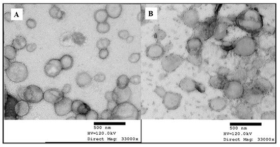 In the present research, the morphology of nanoparticles was explored using TEM images. The uncoated DST-NLCs and the CSO-LA-coated nanoparticles were visualised as approximately 200 to 250 nm mono-dispersed, nearly spherical nanoparticles (Figure 5).