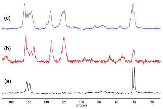 13C-CPMAS (a) pristine HMfCl, (b) H2Mf(HpOXA)2∙4W organic salt, and (c) H2Mf(HpOXA)2 microcrystalline powder.