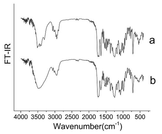 FT–IR spectra (Wavenumber: 400–4000 cm−1) of the samples. (a) Raw PTX; and (b) PTX crystal powders.