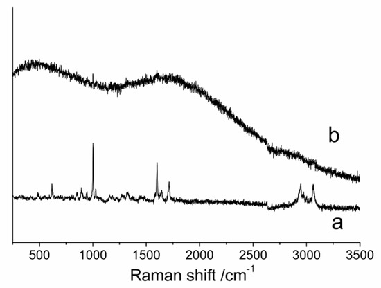 Raman spectra of the samples. (a) Raw PTX, and (b) PTX crystal powders.