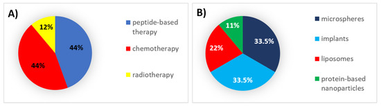During this decade, 44% of all formulations that received authorization were peptides and chemotherapeutic agents, which were mainly encapsulated in implants and microspheres, respectively (Figure 2).