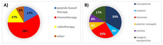 During this decade, 58% of all formulations that received authorization were chemotherapeutic agents, for which microspheres and liposomes were the mainly used types of formulations (Figure 3).
