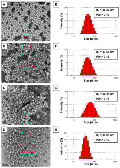 The morphology of self-assembled structures under study was investigated by TEM using a Morgagni TEM (Field Emission Inc., Hillsboro, OR, USA) with a Gatan digital camera (Gatan, Pleasanton, CA, USA). Furthermore, 20 μL of the micellar solution with a polymer concentration of 1 mg·mL−1 was placed on a copper-coated grid. The grid was held horizontally for 1 min to allow the colloidal particles to settle down. The excess fluid was removed by filter paper. The copper-coated grids holding the aqueous samples were then negatively stained by 2% phosphotungstic acid. After 2 min, the excess fluid was removed by filter paper and the grid was loaded into TEM for image analysis.