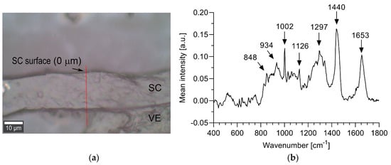 - Tfayli, A.; Piot, O.; Draux, F.; Pitre, F.; Manfait, M. Molecular characterization of reconstructed skin model by Raman microspectroscopy: Comparison with excised human skin. Biopolymers 2007, 87, 261–274. [Google Scholar] [CrossRef]