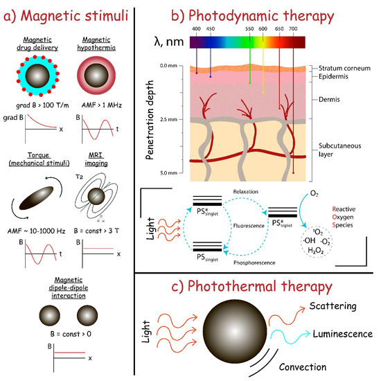 - Chen, Q.; Ke, H.; Dai, Z.; Liu, Z. Nanoscale theranostics for physical stimulus-responsive cancer therapies. Biomaterials 2015, 73, 214–230. [Google Scholar] [CrossRef]