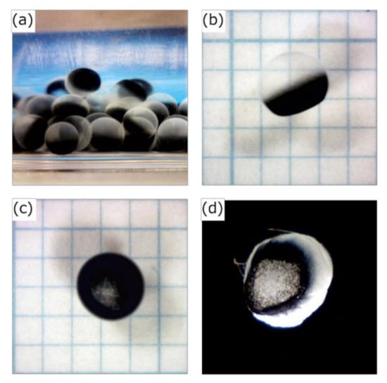 Many types of natural and synthetic polymers have been investigated to find optimal encapsulating materials. The required factors for a polymer gel to be used to encapsulate activated carbon are as follows: non-toxic, insoluble in water, non-degradable by various digestive enzymes, permeable to uremic toxins, and stable over a wide pH range. Bacterial cellulose (BC) gel has good mechanical properties including a high tensile strength and modulus, high water holding capacity, high porosity, high crystallinity, and good biocompatibility []. Therefore, BC gel has been studied as a drug carrier for drug delivery systems [,] and a scaffold for tissue engineering [,]. Previously, we successfully prepared a hollow-type spherical bacterial cellulose (HSBC) gel encapsulating fluorescent particles with diameters of 5.0–5.9 µm larger than the pore size of the BC gelatinous membranes []. These encapsulated particles did not leak from the interior cavity of the HSBC gel.