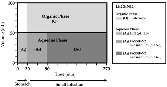 Biphasic Dissolution Test: Tri-potassium phosphate, lecithin, 1-decanol, and sodium taurocholate were purchased from Alfa Aesar GmbH & Co. KG (Kandel, Germany), acetic acid from Chemie GmbH (Steinheim, Germany), tri-potassium citrate was from Carl Roth, and sodium hydroxide was purchased from VWR Chemicals (Darmstadt, Germany).