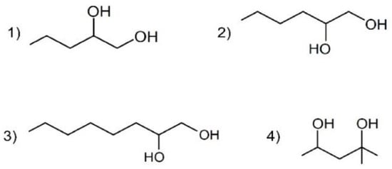 6. Pillai, R.; Schmaus, G.; Pfeiffer, A.; Lange, S.; Trunet, A. Symrise. 1,2-Alkanediols for Cosmetic Preservation. Cosmet. Toilet. 2013, 123, 53–64. [Google Scholar]