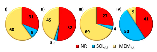 Graph of percentage amount of substance not released (NR), a substance released that passed through the membrane into solution (SOLAS), and amount of substance released that remained on the membrane (MEMAS).