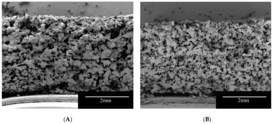 SEM Images of the vertical cross-section of the Formulation I (A) and II (B).