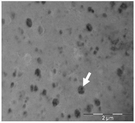 Transfersomes had a spherical shape (Figure 1). Mean particle diameter was also measured by TEM to corroborate the size results obtained in DLS with the TEM images, and to study the morphology of the vesicles. Using Image J software, the diameter obtained was 238.48 ± 29.74 nm. The fact that the diameter obtained in TEM is smaller than in DLS is due to the solvation of the transfersomes when measured in aqueous suspension.