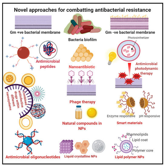 Interestingly, it was found that nano-sized systems not only improve the therapeutic activity of antibacterial agents but also restrain the stimulation of resistance by overcoming bacteria developed resistance strategies that involve drug decomposition by β-lactamase, efflux pumps, or thickening of bacterial cell walls [24].