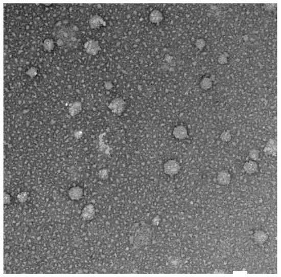 The TEM image confirmed the formation of quercetin-loaded niosomes (Figure 2) and showed the spherical structure and monodisperse size distribution of the formed vesicles with a similar appearance to the typical shape of images captured in previous studies [43]. In addition, the vesicles’ average size obtained from TEM images (140.4 ± 25.2 nm) was similar but slightly smaller to that measured by DLS technique (161.0 ± 4.61 nm) due to the drying effect that happened during sample preparation. Moreover, the particle-size distribution showed monomodal size distribution of F2 formulation.