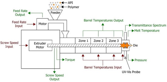 - Wahl, P.R.; Treffer, D.; Mohr, S.; Roblegg, E.; Koscher, G.; Khinast, J.G. Inline monitoring and a PAT strategy for pharmaceutical hot melt extrusion. Int. J. Pharm. 2013, 455, 159–168. [Google Scholar] [CrossRef]