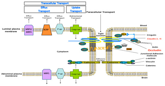 - Haseloff, R.F.; Dithmer, S.; Winkler, L.; Wolburg, H.; Blasig, I.E. Transmembrane proteins of the tight junctions at the blood-brain barrier: Structural and functional aspects. Semin. Cell Dev. Biol. 2015, 38, 16–25. [Google Scholar] [CrossRef]