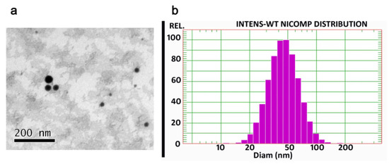 Transmission electron microscopy (a) and size distribution (b) of the aconitine-loaded microemulsion.