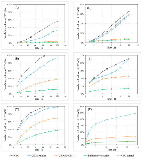 3.5. Release Behavior of CEO from the Film Nanocomposite
