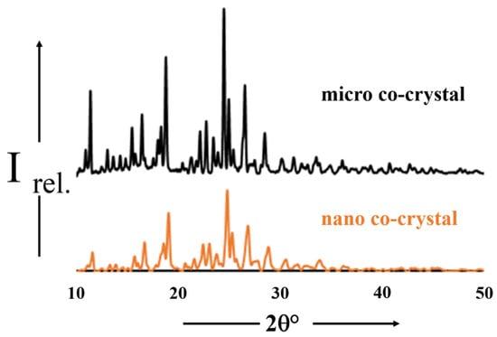 PXRD diffractograms for the micro (black) and nano co-crystals (orange).