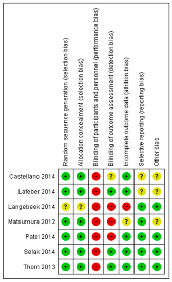 - Higgins, J.P.; Altman, D.G.; Gotzsche, P.C.; Juni, P.; Moher, D.; Oxman, A.D.; Savovic, J.; Schulz, K.F.; Weeks, L.; Sterne, J.A. The Cochrane Collaboration’s tool for assessing risk of bias in randomised trials. BMJ (Clin. Res. ed.) 2011, 343, d5928. [Google Scholar] [CrossRef]
