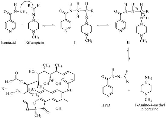 - Singh, S.; Mariappan, T.T.; Sharda, N.; Chakraborti, A.K. The reason for an increase in decomposition of rifampicin in the presence of isoniazid under acid conditions. Pharm. Pharm. Comm. 2000, 6, 405–410. [Google Scholar] [CrossRef]