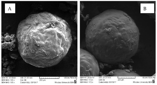 The shape and surface morphology of the microspheres were investigated using scanning electron microscopy (Tescan, VEGA LMU, Czech Republic). The microspheres were mounted onto a double-sized carbon stub and placed onto a sample disc carrier (3 mm in height and 10 mm diameter). The sample was sputter-coated with gold under vacuum of 0.25 Torr (Balzers Union Ltd., Balzers, Lichtenstein) prior to imaging at 20 KV with an electron beam.