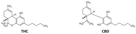 - Boggs, D.L.; Peckham, A.; Boggs, A.; Ranganathan, M. Delta-9-tetrahydrocannabinol and cannabidiol: Separating the chemicals from the “weed,” a pharmacodynamic discussion. Ment. Health Clin. 2016, 6, 277–284. [Google Scholar] [CrossRef]