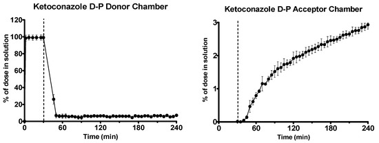 - Ruff, A.; Fiolka, T.; Kostewicz, E.S. Prediction of Ketoconazole absorption using an updated in vitro transfer model coupled to physiologically based pharmacokinetic modelling. Eur. J. Pharm. Sci. 2017, 100, 42–55. [Google Scholar] [CrossRef] [PubMed]