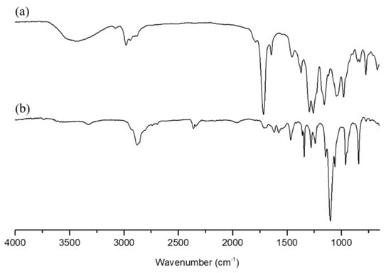 Fourier transform-infrared (FT-IR) spectra of (a) di-(2-hydroxypropyl fumarate) (DHPF) and (b) PFU.
