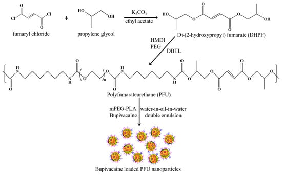 Fabrication of biodegradable bupivacaine-loaded polyfumarateurethane (PFU) nanoparticles.