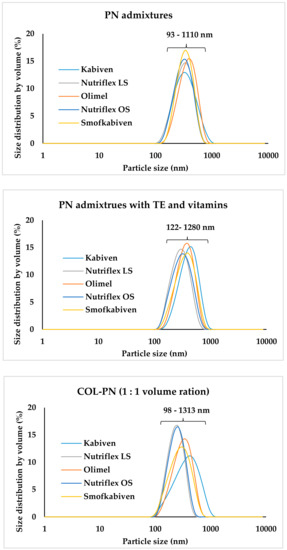 - Télessy, I.; Balogh, J.; Csempesz, F.; Szente, V.; Dredán, J.; Zelkó, R. Comparison of the physicochemical properties of MCT-containing fat emulsions in total nutrient admixtures. Colloids Surf. B Biointerfaces 2009, 72, 75–79. [Google Scholar] [CrossRef] [PubMed]