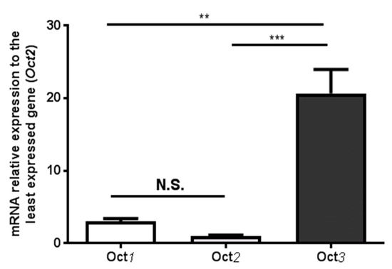 3.2. Expression of Oct1-3 Transporter Genes in Rat Brain Microvessels