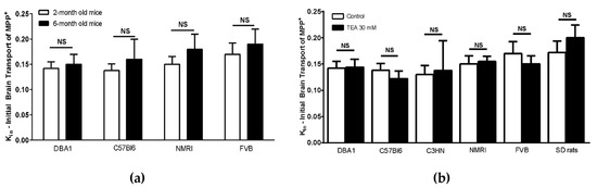 3.5. [3H]-1-Methyl-4-Phenylpyridinium Transport at the Luminal BBB in Mice and Rats
