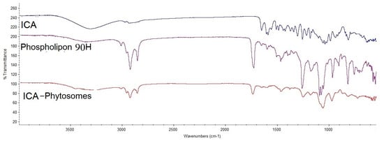 Fourier-transform infrared (FTIR) of ICA, Phospholipon® 90H, and ICA-phytosomes.