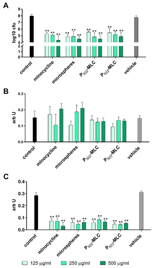Chicago/Turabian StyleSchmid, Jan-Luca, Martin Kirchberg, Sandra Sarembe, Andreas Kiesow, Anton Sculean, Karsten Mäder, Mirko Buchholz, and Sigrun Eick. 2020. "In Vitro Evaluation of Antimicrobial Activity of Minocycline Formulations for Topical Application in Periodontal Therapy" Pharmaceutics 12, no. 4: 352. https://doi.org/10.3390/pharmaceutics12040352