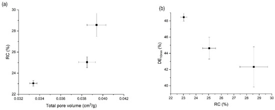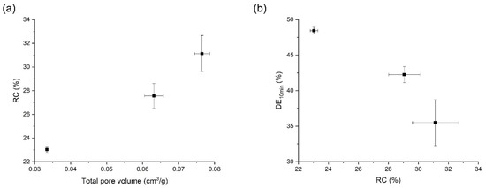 | Mass Ratio (N:O) 1 | T (K) 2 | P (MPa) 3 | Total Pore Volume (cm3/g) | Drug Content (%) | RC (%) 4 | DE10 (%)5 |