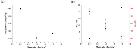 3.5. Effects of Mesoporous Silica:Drug Mass Ratio on the Orlistat Loading Behavior onto Mesoporous Silica