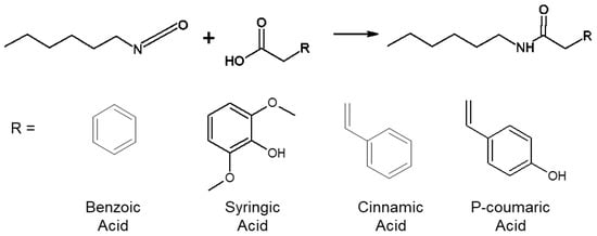 - Natella, F.; Nardini, M.; Di Felice, M.; Scaccini, C. Benzoic and cinnamic acid derivatives as antioxidants: Structure-activity relation. J. Agric. Food Chem. 1999, 47, 1453–1459. [Google Scholar] [CrossRef]
