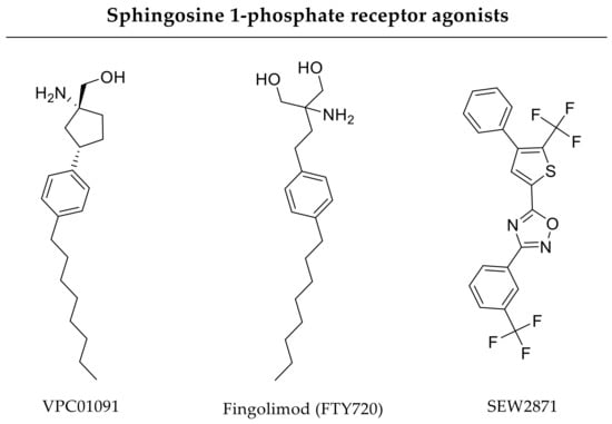 Chemical structures of sphingosine 1-phosphate receptor agonists. The lipid mediators act mainly on vascularization and bone metabolic cells.