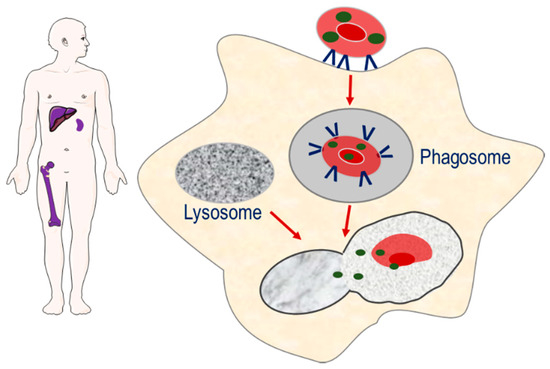 - Bratosin, D.; Mazurier, J.; Tissier, J.P.; Estaquier, J.; Huart, J.J.; Ameisen, J.C.; Aminoff, D.; Montreuil, J. Cellular and Molecular Mechanisms of Senescent Erythrocyte Phagocytosis by Macrophages. A Review. Biochimie 1998, 80, 173–195. [Google Scholar] [CrossRef]
