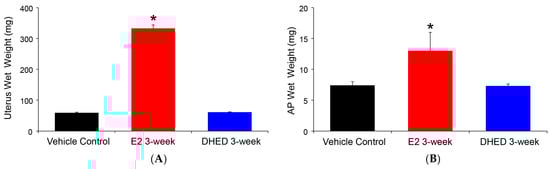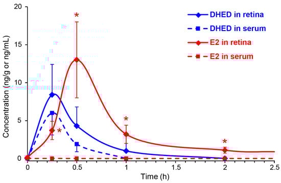 3.2. Topical DHED Produces Large Concentration of E2 in the Retina without Peripheral Exposure to the Hormone