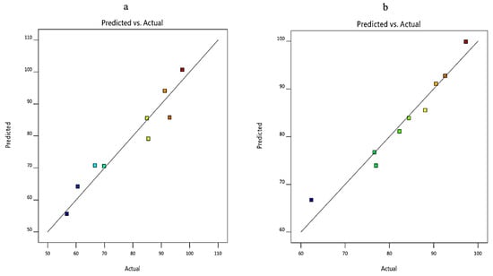Goodness of fit of this model to the experimental data was evaluated by using the coefficient of determination (R2), adjusted R2, and predicted R2. Furthermore, the results obtained from the factorial design were statistically analyzed, using analysis of variance (ANOVA). The significance level of each term was determined on the basis of F statistics and the p-value considering that the null hypothesis (H0) is true. A p-value less than 0.05 is considered significant at a level of significance of α = 0.05, indicating that the factor is significant and the null hypothesis can be rejected [22].