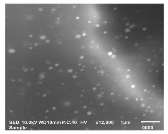 The morphological characteristics of the optimized ACZ-loaded TNVs were investigated by using scanning electron microscopy (SEM) (JEOL, JSM-6360, Tokyo, Japan). The optimized transfersomal dispersion was suitably diluted with distilled water and mounted onto the aluminum stub, using double-sided sticking carbon tape. The sample was dried under vacuum and coated with a gold film. After coating, the TNVs were examined and photographed by SEM [32].