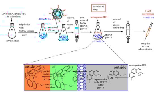 - Wehbe, M.; Anantha, M.; Backstrom, I.; Leung, A.; Chen, K.; Malhotra, A.; Edwards, K.; Bally, M.B. Nanoscale Reaction Vessels Designed for Synthesis of Copper-Drug Complexes Suitable for Preclinical Development. PLoS ONE 2016, 11, e0153416. [Google Scholar] [CrossRef] [PubMed]