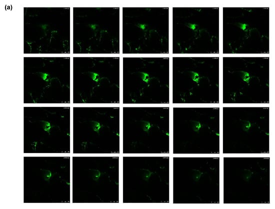 The depth and surface area of the microchannels created were studied by Leica SP8 confocal laser microscopy without any dimensional distortions during physical sectioning. Hair follicles were not observed in the confocal images (Figure 3), confirming the diffusion of calcein solely through the microchannels created, and not the follicular pathway. Deeper microchannels were formed with a 1 mm treatment for 10 s (380 µm) as compared to 0.5 mm for 5 s (200 µm). The morphology of the micropores followed a conical pattern for both treatments. However, irregularities in the conical pattern and greater diffusion of calcein dye, staining only the inner walls of the microchannels, was observed on treatment with 1 mm needle length treatment for 10 s.