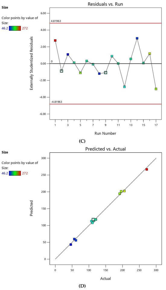 3.1.2. Statistical and Response Analysis for the Effect of Variables on Vesicle Size (Y1)